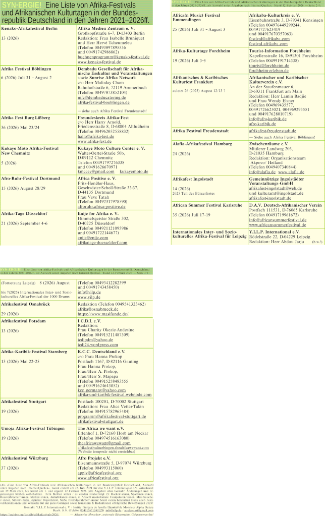 The experienced and competent ensemble will for sure find attraction among festival and concert guests, determine a positive event and grant remaining beautiful memories for years, by this invite all guests to join westafrican dance and chants with them.
