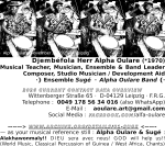 - Application for Festival Concert Performances of the Ensemble Alpha Oulare & Sugé in 2026ff.Alpha Oulare and his ensemble Sugé of westafrican musicians from Guinea are highly interested in festival and other concert participation during the months of Spring to Autumn/Winter in year 2027, highly motivated and at their skillful best. The experienced and competent ensemble will for sure find attraction among festival and concert guests, determine a positive event and grant remaining beautiful memories for years, by this invite all guests to join westafrican dance and chants with them. CONTACT DATA : +491785634016 (phone-calls preferably at Central-European daytime; also WhatsApp messenger at this international dial: i. e. Djembéfola and Ensemble and Band leader … Continue reading Application for Festival Concert Performances of the Ensemble Alpha Oulare & Sugé in 2026ff.